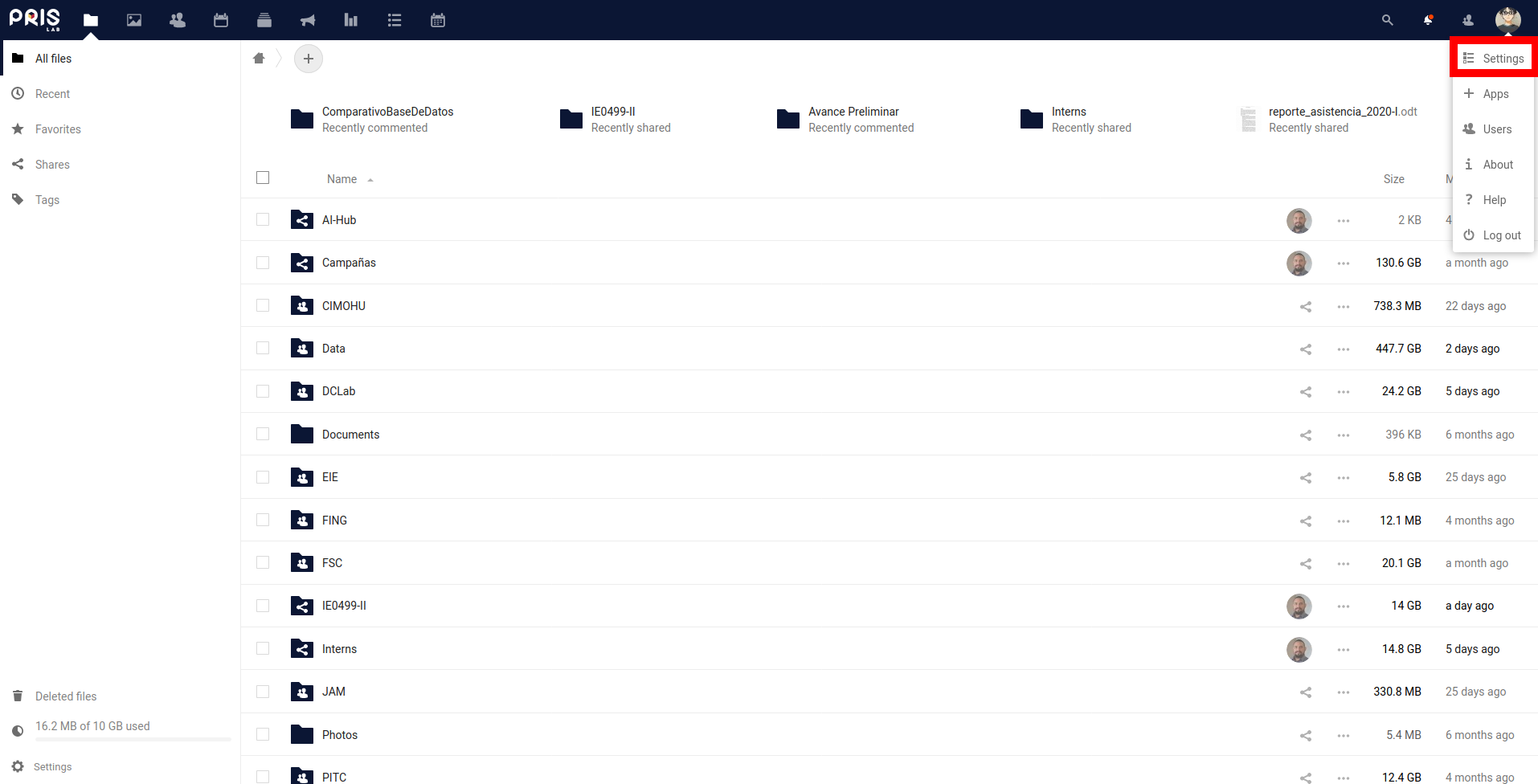 Settings'