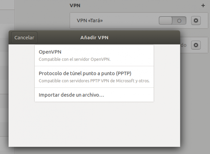 El NetworkManager es una interfaz de Linux la cual permite inicializar y desactivar la VPN de una manera cómoda (sin usar la terminal). Para añadir la VPN al NetworkManagar, se deben llevar a cabo los siguientes pasos: